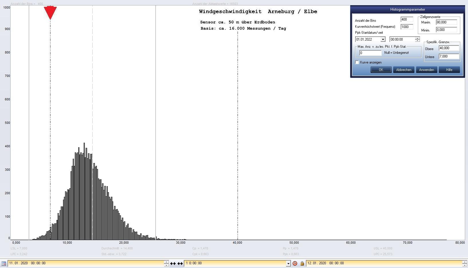 Arneburg Tages-Histogramm Winddaten, 20.01.2020